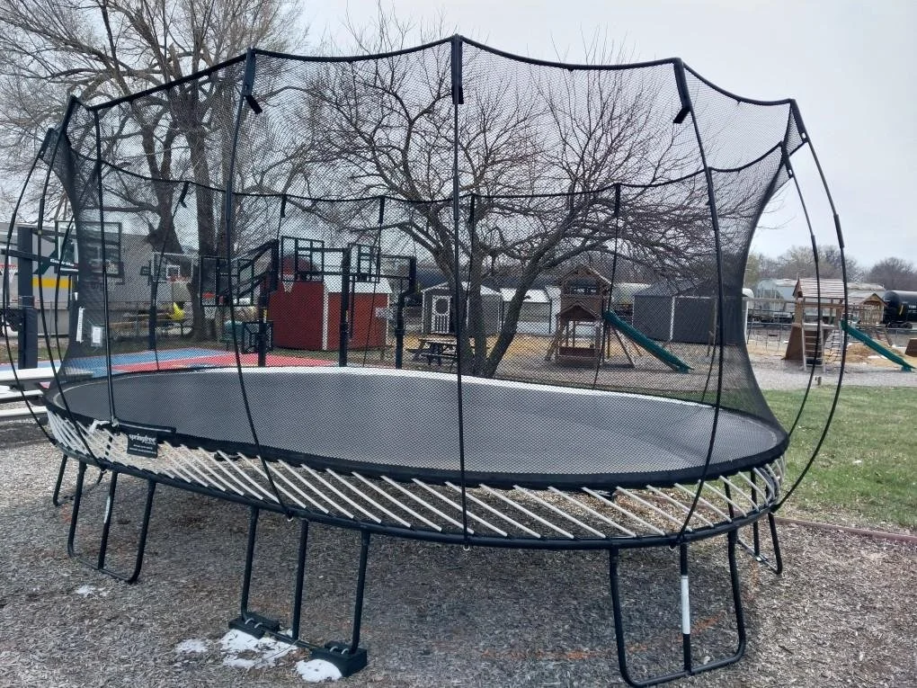 FREE local (within 60 mi of our store) delivery & installation with the purchase of a Backyard Adventure playset display or Springfree Trampoline display! Half-price installation on any hoop display (includes new anchor)!